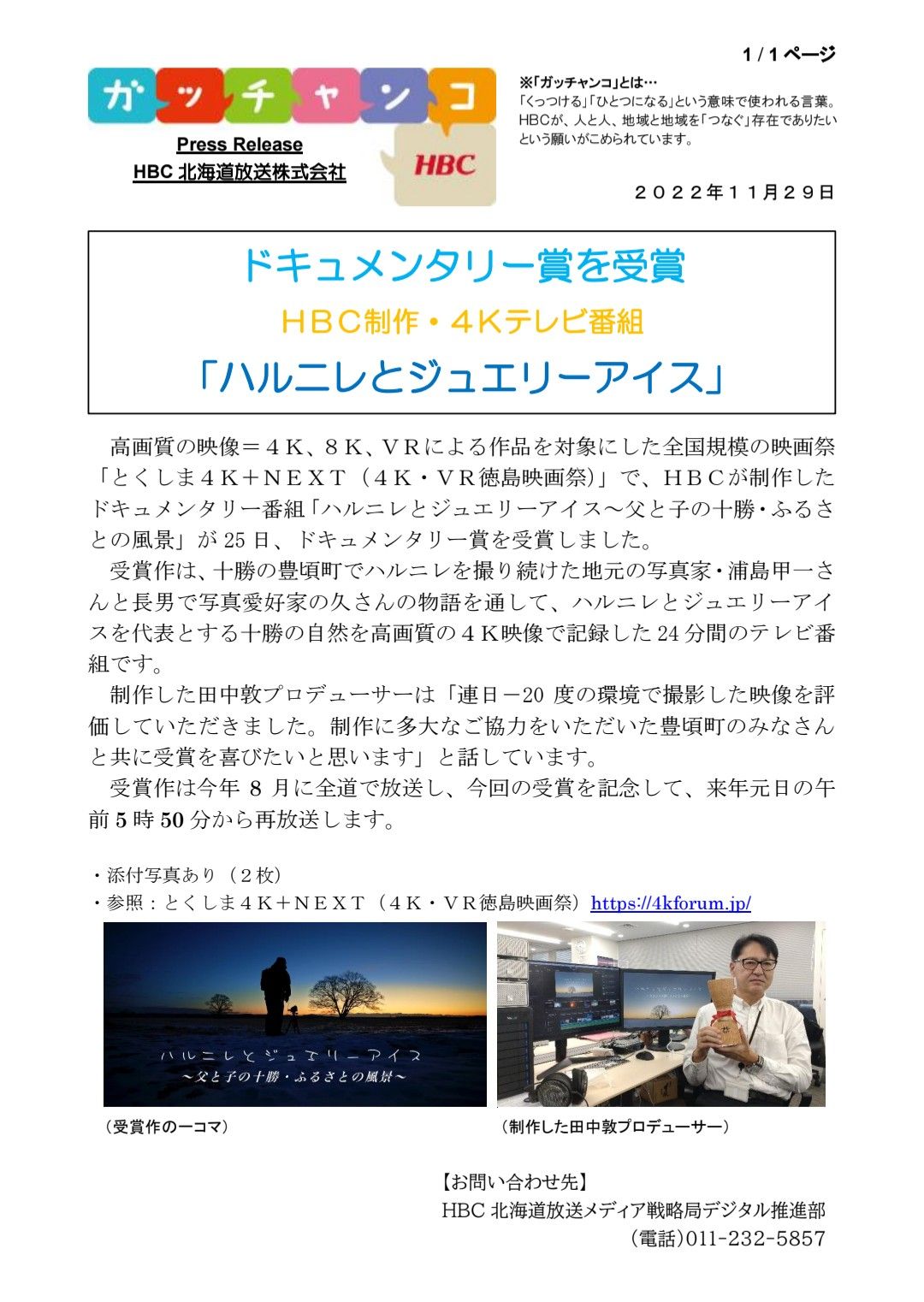 いよいよ今度の月曜日です。これで3度目の再放送になります。これまでご見てない方は、ぜひ。いい番組です……と自分で言うのも変ですね。AirDoの機内プログラムにも採用されていて、3月末まで見れます。けっこう見てもらっているようです。