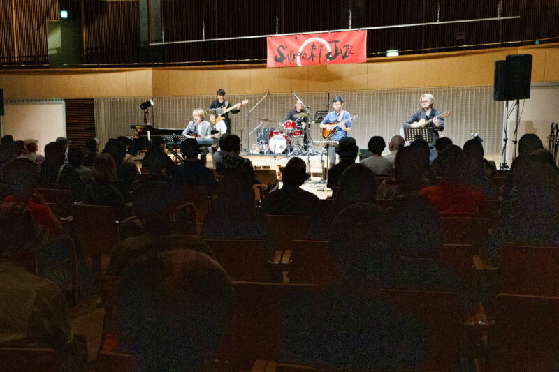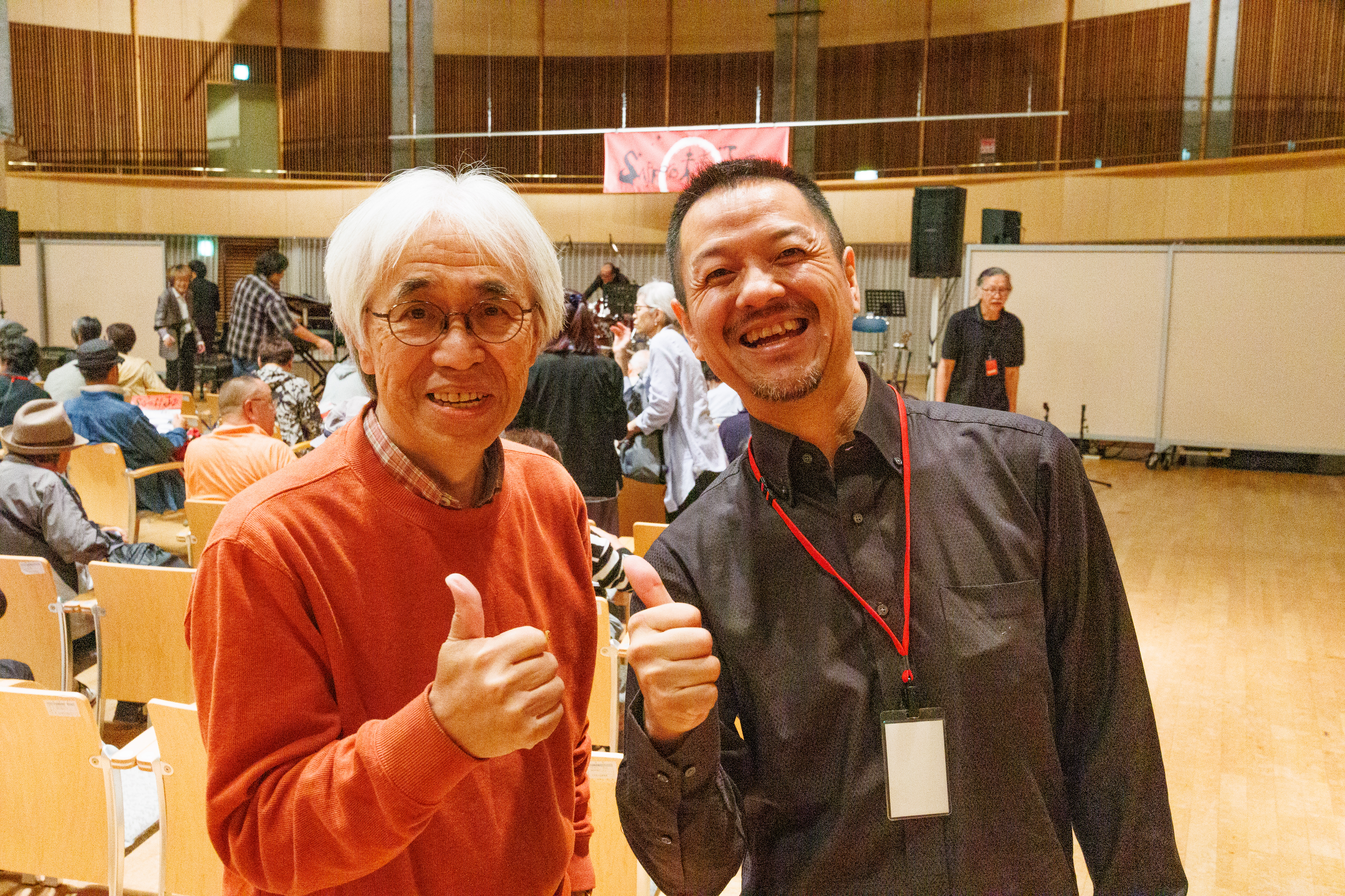 会場ではもう一人、懐かしい方にも会えました。ベースの柳真也さんです。以前、FM-JAGAの U-Jazz Alley でも紹介させてもらったことがあり、実際に会うのは今回で2度目でした。