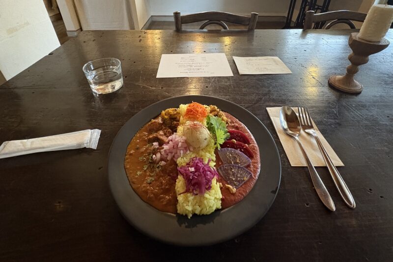 有機野菜カフェ「灯里」は、月に一度のカレー提供の日でした。美味しかった。美しかった。ここでも、ナスをゲット。