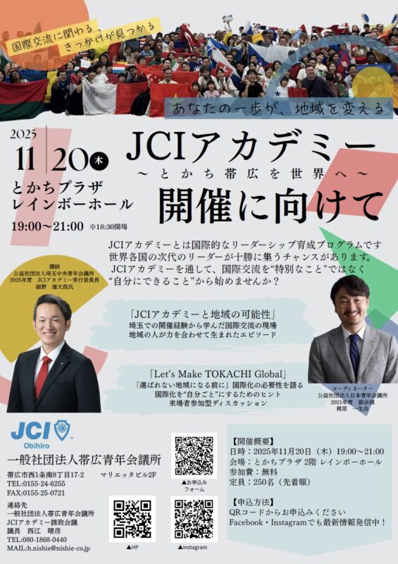 日本青年会議所では、毎年、各国の青年会議所の代表を招き、国際的に活躍できるリーダーを育成するためのトレーニングを行っているそうです。なんと、そのプログラムが来年、帯広で開催されるとのこと。