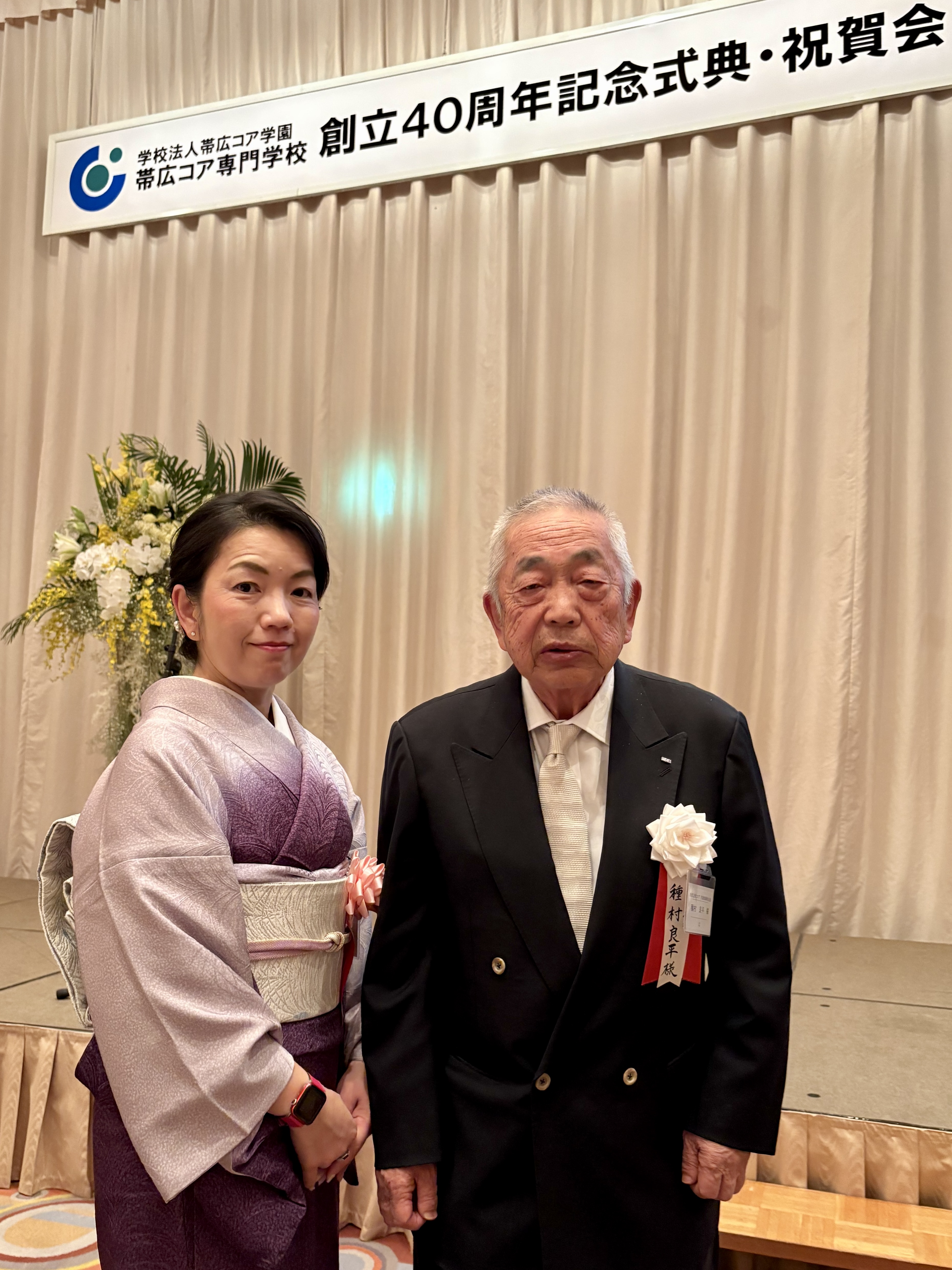 会場では、創設者の種村良平さん(コア代表取締役会長)と、神山恵美子さん(帯広コア学院副理事長)が本当に嬉しそうでした。ここまでの道のりを思うと、いろいろな場面がよみがえってきたのでしょう。コアは、今では帯広に欠かせない学校になりました。