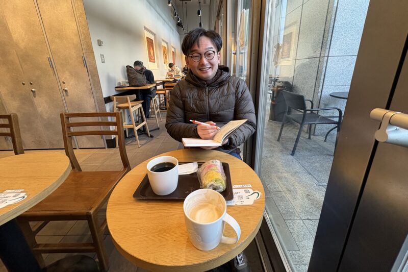 NHKの神門アナと朝7時からコーヒータイム。「ジョイ50周年記念ノート」にコメントを書いてもらいました。いつものように、楽しい朝のトークでした。