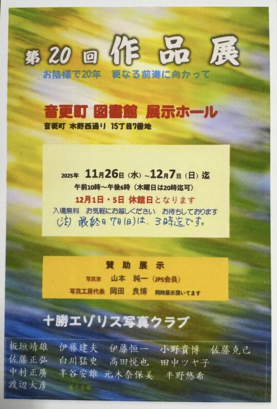 十勝エゾリス写真クラブの作品展を見てきました。毎年これを見ると、冬の気配が近づいているのを感じます。会場には、今回もさまざまな写真が並んでいました。その中にはハルニレの写真が2枚あり、思わず足が止まりました。
