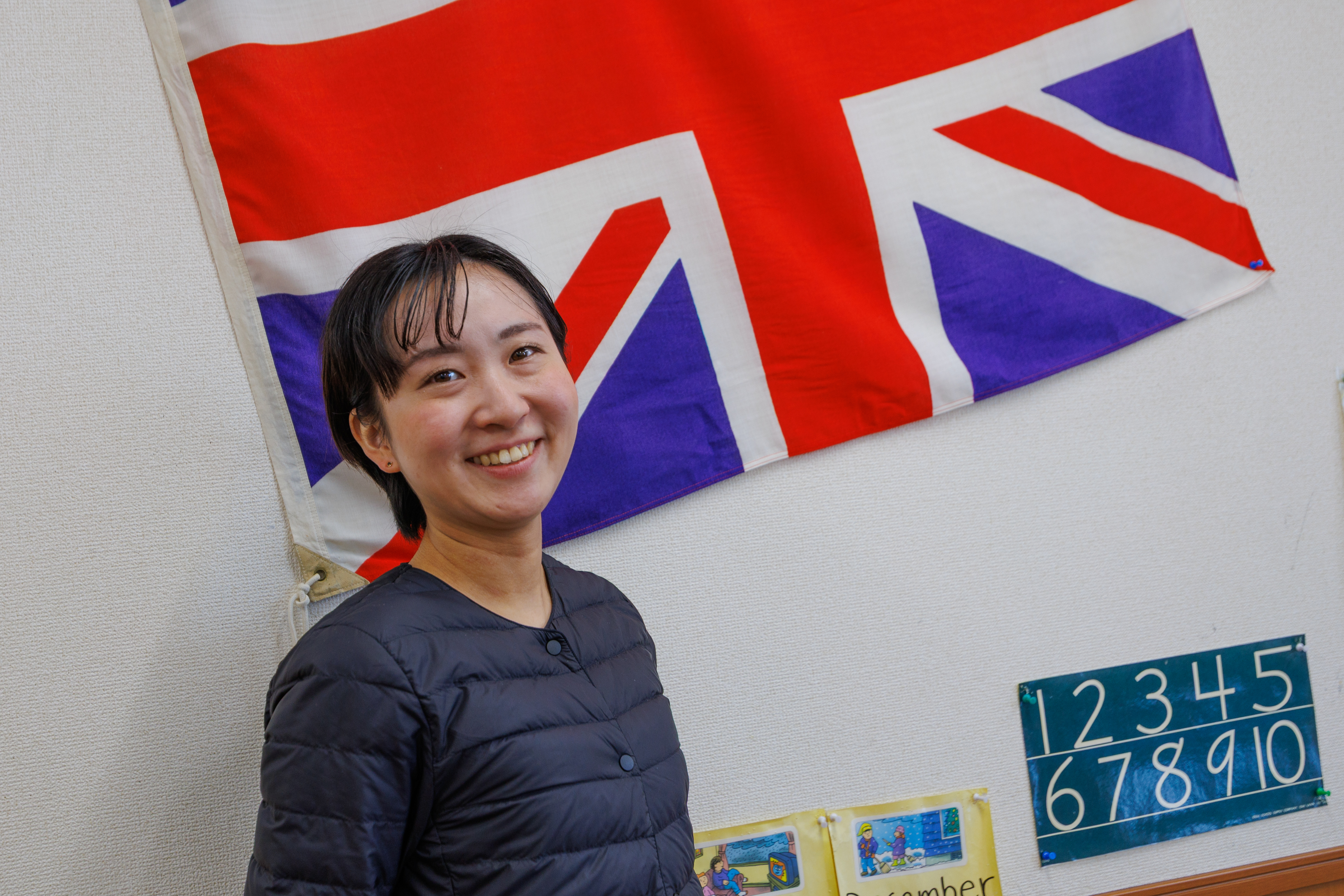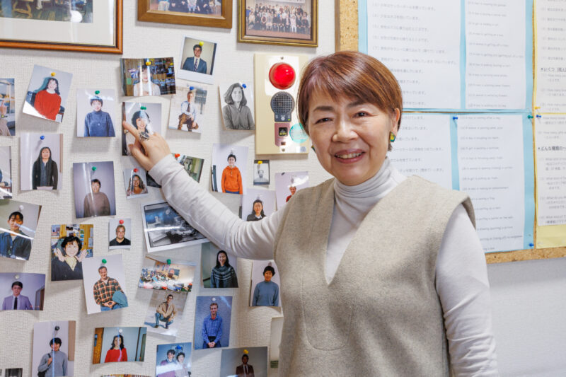 そして、元ジョイ講師の高崎千賀子さんが、6年ぶり(?)に来てくれました。今は金沢市で英語教室を運営しています。名前は Rainbow Place。なんと、ジョイの元外国人講師のアイリーンが命名したとか。ジョイの廊下で自分の写真を見つけて、記念写真。