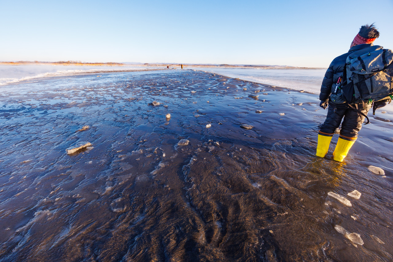 日曜日、そして十勝晴れということもあり、大津海岸にはたくさんの人が訪れていました。しかし残念ながら、河口にも新しいジュエリーは上がっていませんでした。砂浜は波で濡れ、私の好きな状況ではあったのですが、肝心のジュエリーアイスがありません。