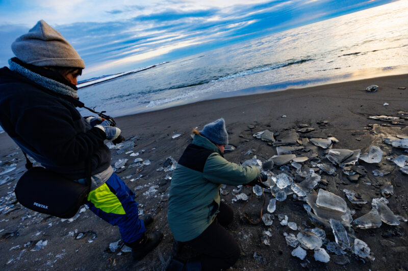 今日は、豊頃町観光協会主催のジュエリーアイス写真教室が開かれました。私も写真家の岸本日出雄さんと一緒に、講師を務めさせてもらいました。