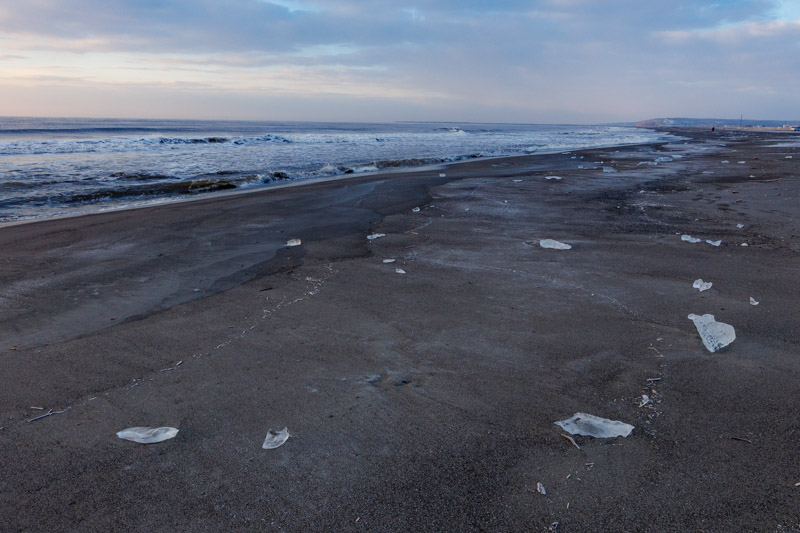 今日も河口を目指しました。昨日よりジュエリーは少なかったのですが、前浜と中浜に少し残っていました。河口には巨大なジュエリーが。一番大きなものは四畳半ほどの大きさです。海に浮かんでいるものもありました。そろそろ在庫一掃セールが始まるのかもしれません。
