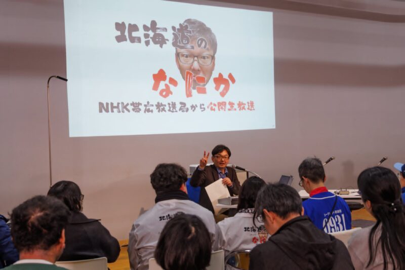 28日(土)、ラジオ番組「北海道のなにか」の公開生放送に参加するためにNHK帯広放送局へ。現在は札幌放送局のアナウンサーを務める神門光太朗さんの番組です。会場には100名以上のお客さんが集まっていたのではないでしょうか。神門さんは本当に大人気。中には、この日のために本州から駆けつけた人も。