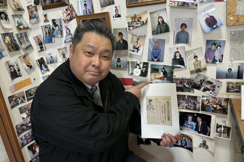 ここは歴代講師のコーナー。そして、自分の写真を発見!そう、落合くんはジョイの元講師でした。アメリカの大学を卒業し、帯広に戻ってきたばかりの頃です。たしか半年ほどだったと思います。家業の焼肉「ウエスタン」に入社するまでの間、ジョイで英語を教えてくれていました。いまは立派な社長です。