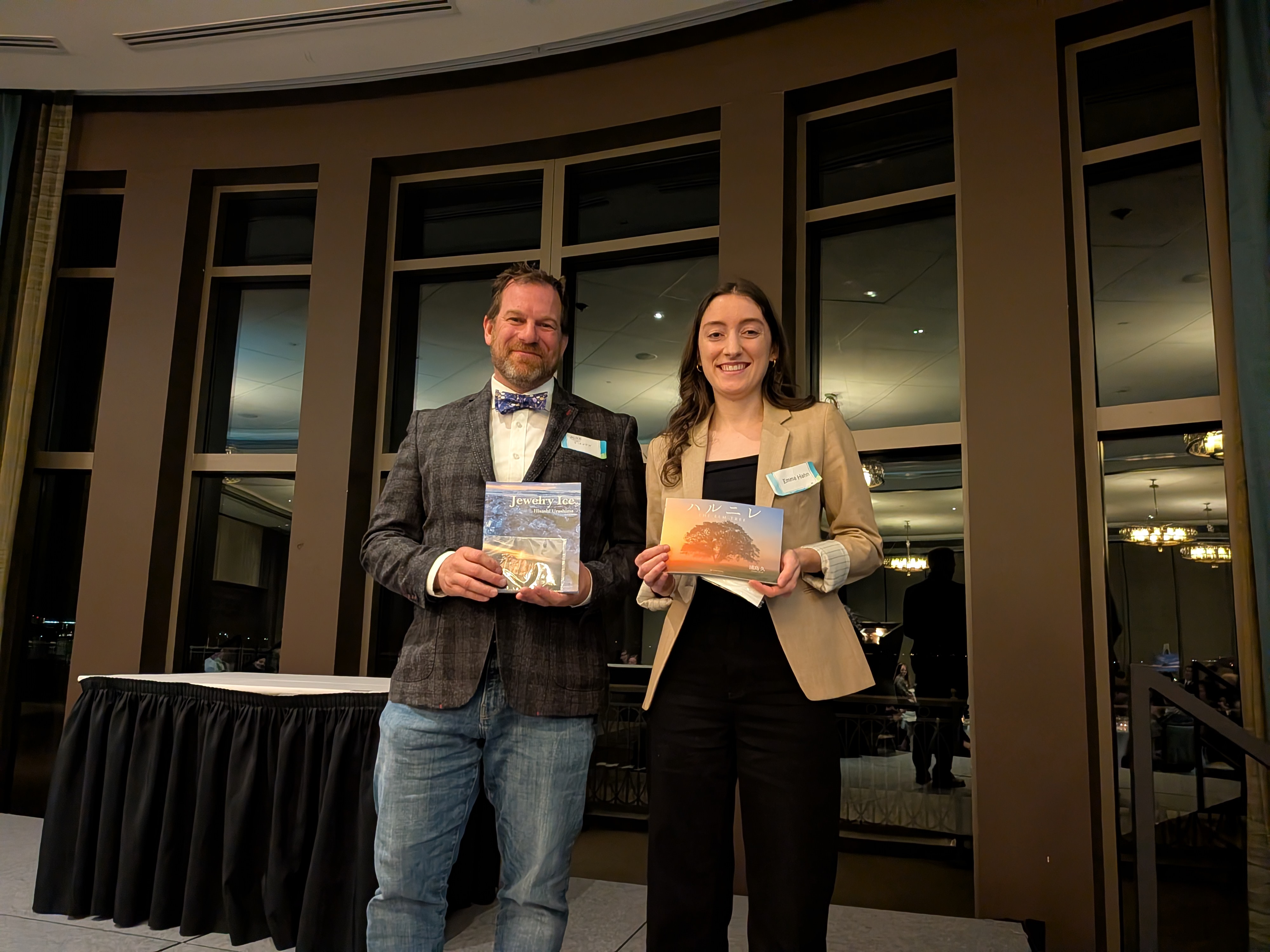 そのパーティー会場に、なんと私の写真が8枚(ハルニレ4枚&ジュエリーアイス4枚)飾られました。同時に展示されたのが、今年、帯広市と北海道から文化奨励賞をダブル受賞したアート作家・加藤かおりさんの作品。こんな素晴らしい場で一緒に展示してもらえるなんて、本当に光栄です。私の写真を見て、興味を持ってくれた人はいたでしょうか? 少し気になります。