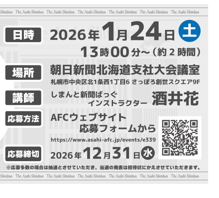 この新聞ばっぐは関心を持つ人が多いようで、今度、酒井さんは札幌や地元・十勝で講習会を開くそうです。興味のある方は、参加してみてはいかがでしょうか。